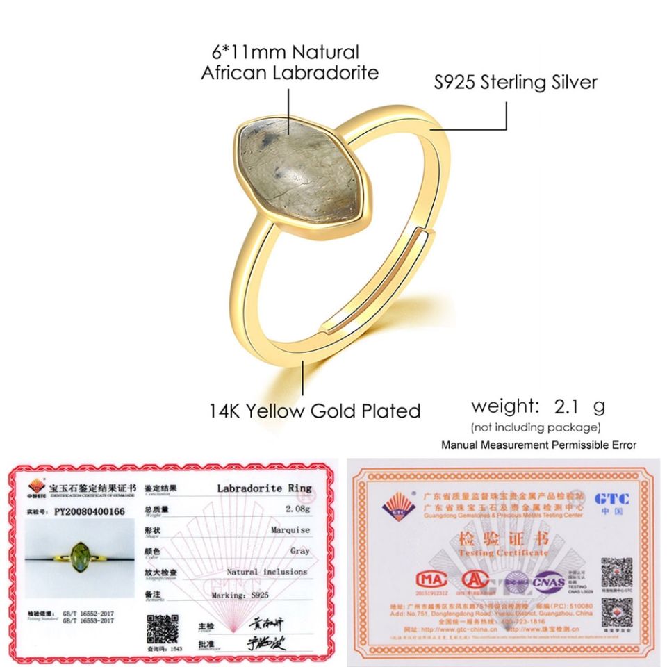 A stone of transformation, Labradorite is known for cleaning the owner’s aura. It symbolizes change while imparting perseverance and strength. It is also believed that this gemstone prevents you from getting influenced by negative energies. Labradorite is regarded as a healing stone that arranges balance and eases out worries and anxieties. When you walk towards transforming your life, you do it for good, therefore this gemstone improves your quality of life. And having a Labradorite ring by your side is easy to access the gemstone and its healing energies. Made up of 925 Sterling Silver, embellished with Natural African Labradorite Gemstone and 14K Gold Plated, this piece of fine jewelry can be a thoughtful purchase and gift for either someone you love or for yourself.