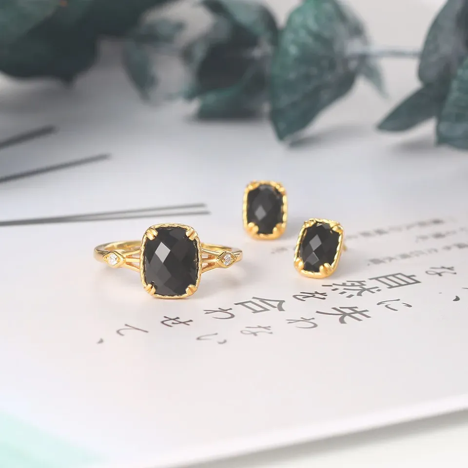 • Item Type: This set includes a meticulously designed Ring, a pair of Earrings, and a Pendant, all embellished with the mesmerizing Black Agate.