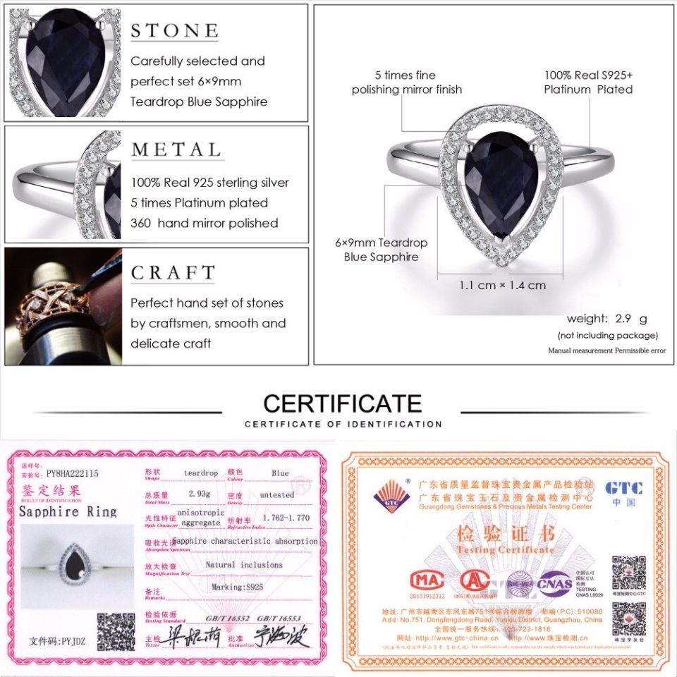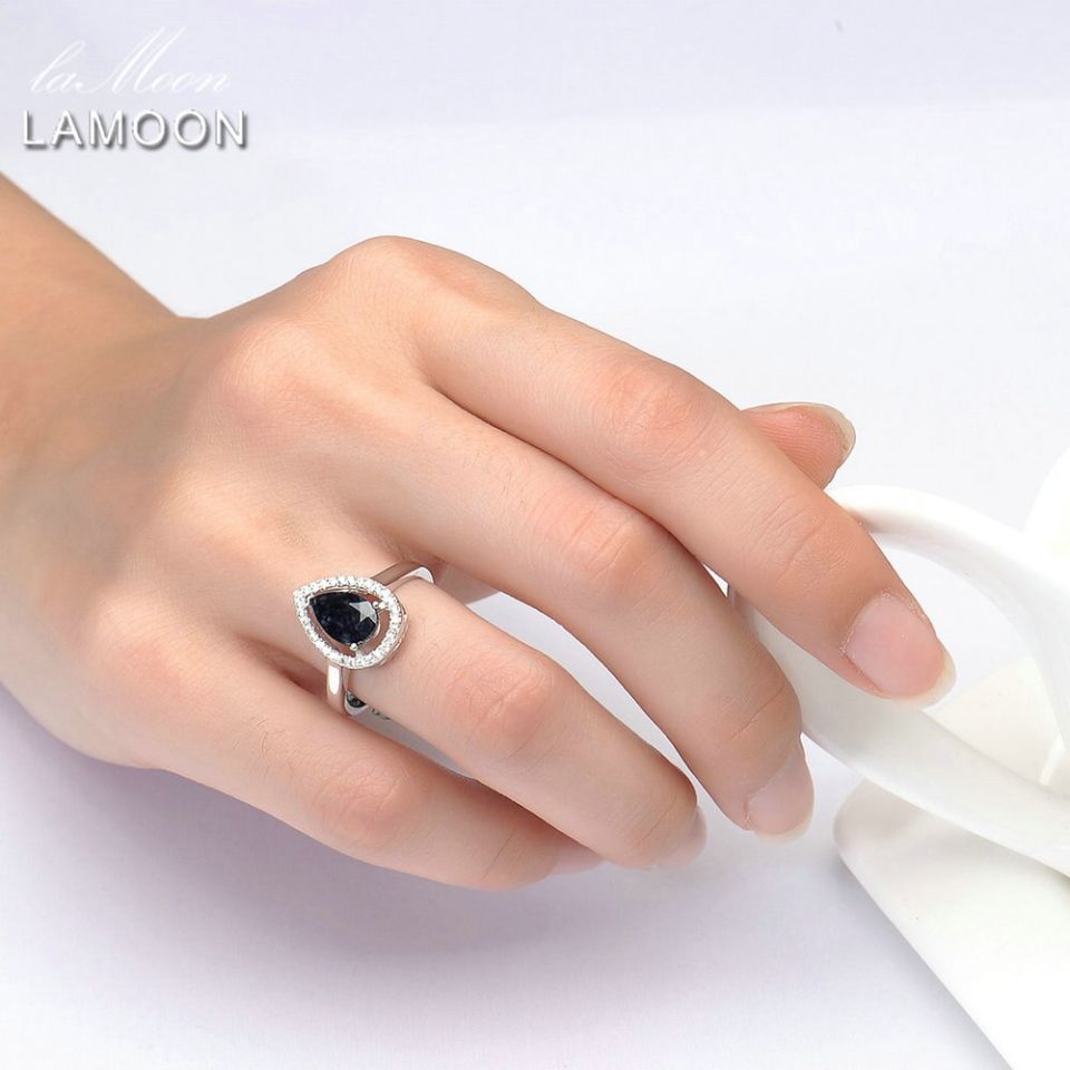 Blue Sapphire is a stone symbolising inner vision, order and focus. It also represents virtue, wisdom, insight and sincerity. When it comes to jewellery, Sapphire has always been praised for the way it can bring elegance to accessories. Made with 925 Sterling Silver, this ring is Platinum Plated and embellished with a Teardrop Shaped Sapphire in the centre, adorned with various tiny zircons, around the stone as a glittering frame. Any piece of jewellery with a teardrop design is usually worn as a memorial, to commemorate a loved one. But when it comes to an optimistic point of view, it symbolises the ‘end of tears’ and beginning of a journey ‘full of happiness.’