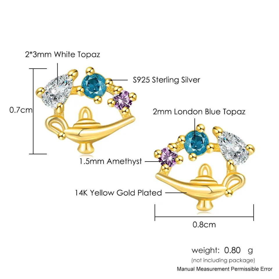 Design Concept of Blue Topaz Magic Lamp Stud Earrings