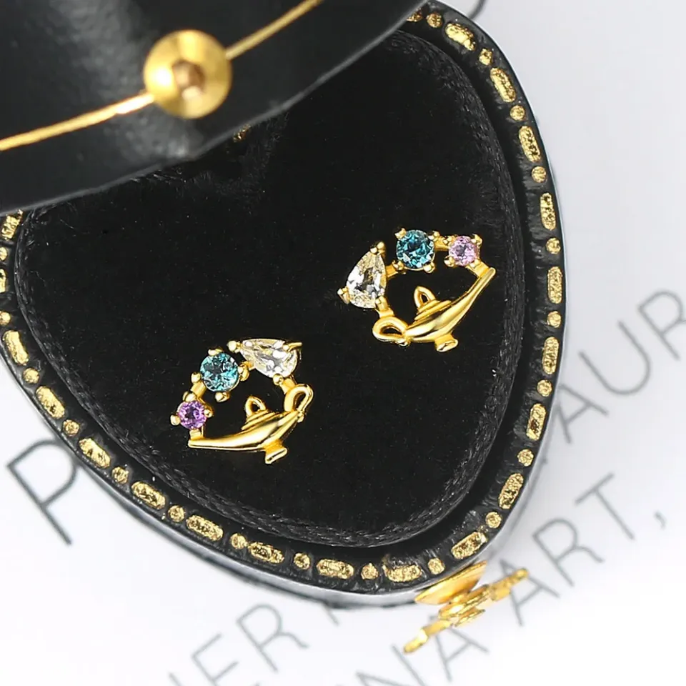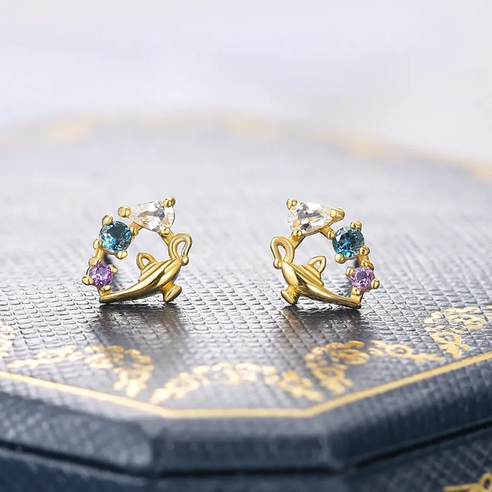 Pair these enchanting Magic Lamp Stud Earrings with flowing silks or velvets to channel your inner royalty, perfect for a magical night out or a special daytime gathering.