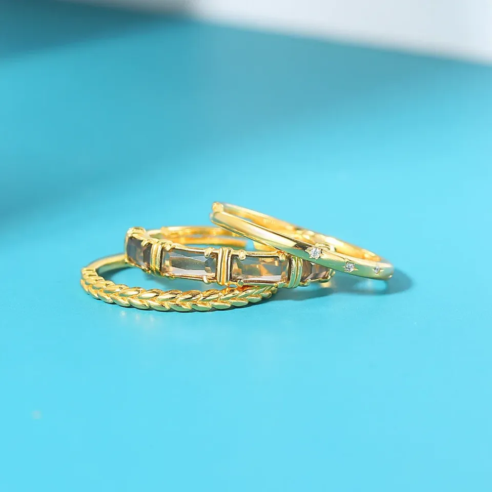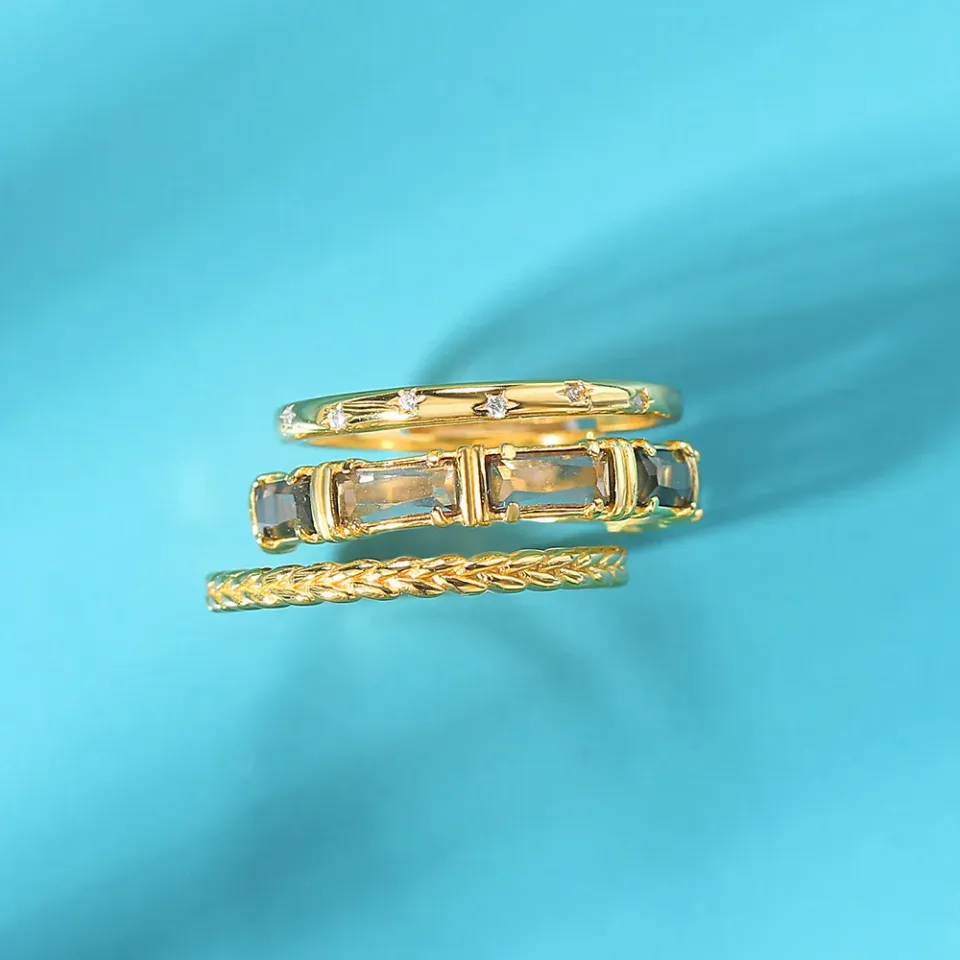 - Ring 3: Boasts a rectangular bridge-shaped Citrine, a centrepiece that shines with the warmth of the sun.