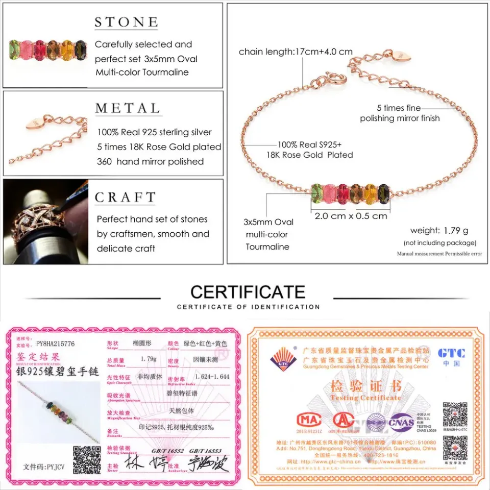 - Main Stone: Multicolored Tourmaline, each stone uniquely contributes to the bracelet’s mesmerizing color spectrum.