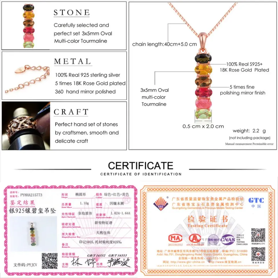 - Main Stone: Genuine Multicoloured Tourmaline, each stone uniquely contributing to the pendant’s mesmerizing color palette.