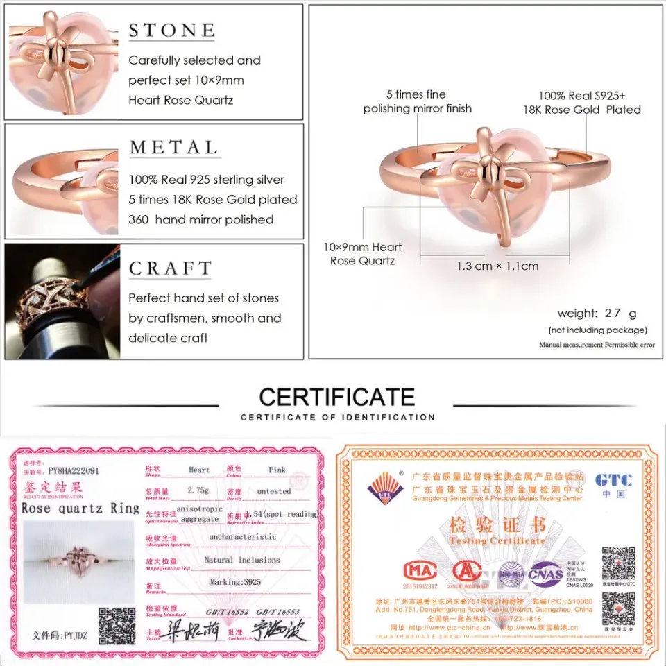 - Main Stone Details: A 9x10mm 100% natural gemstone rose quartz, renowned for its association with happiness, a healthy body and mind, and success.