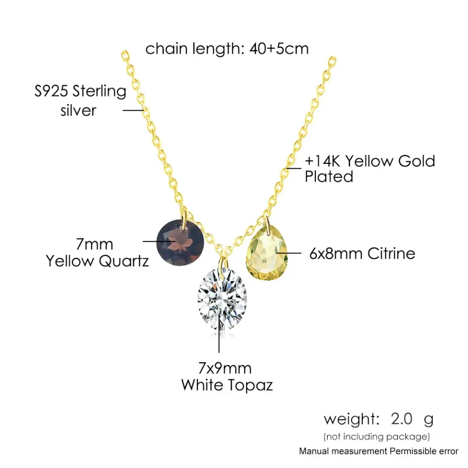 - Main Stones: A trio of circular-shaped gemstones—Yellow Quartz, White Topaz, and Citrine—beautifully designed to create a mesmerizing effect.