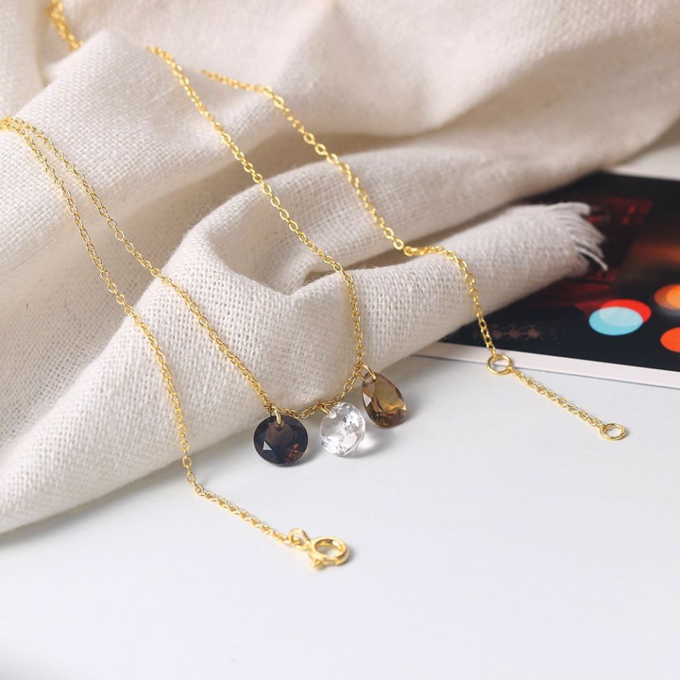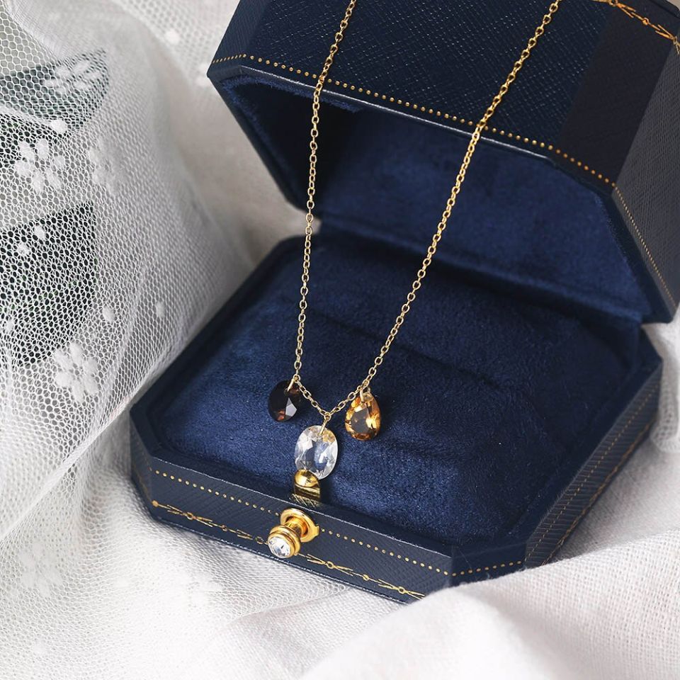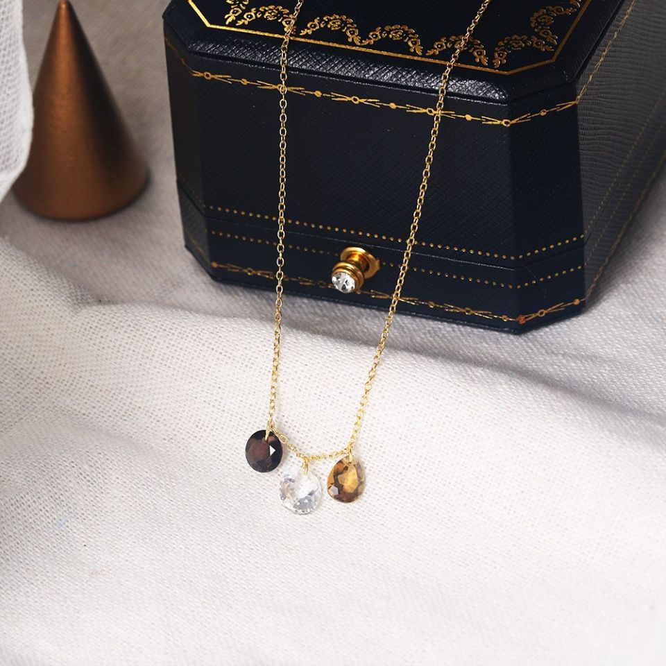 Multi coloured gemstone studded jewelleries are an elegant alternative rather than wearing heavy or much bolder ones. They not only look much sophisticated but also transform outfits completely. Made with 925 Sterling Silver, the Chain Pendant is 14k Gold Plated. The middle portion comprises of three circular shaped gemstones: Yellow Quartz, White Topaz and Citrine designed together. So if you’re looking for something that’s simple yet equally elegant, that this piece of jewellery might be something you would want to pick.
