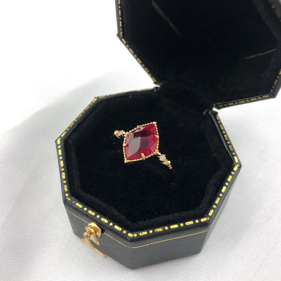 Elevate any outfit with this Red Corundum Ring—perfect for a bold statement or a subtle hint of sophistication, it complements both day and night ensembles, ensuring you shine with confidence and class.
