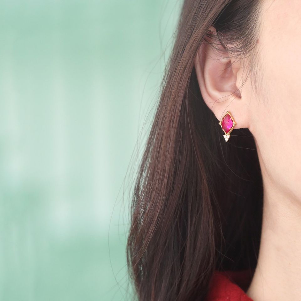 Minimalist jewelleries bring a totally different vibe to whatever you’re wearing. These pieces of cute and sober jewelleries not only add glitters to your outfits but are also a perfect pick for various occasions. And who wouldn’t want a good collection of minimalist jewellery that they can carry around and add that wow factor to their accessories? Made with 925 Sterling Silver and a Gold plated body, this pair of Olive Shaped Red Corundum Earrings totally stands out. So if you would like to give it as a gift to someone special or make yourself feel special, don’t hesitate to get your hands on this adorable piece of jewellery.