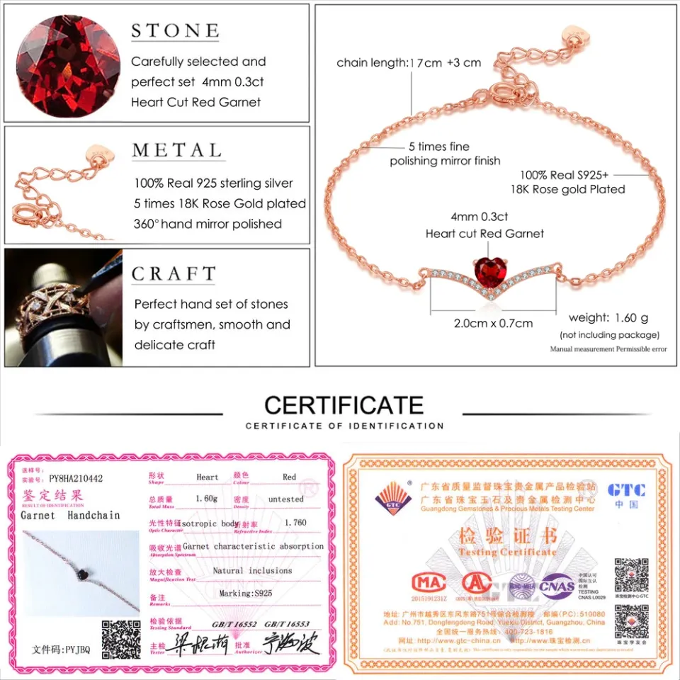 - Main Stone: Heart-shaped Red Garnet, set as the centerpiece to symbolize love and passion.