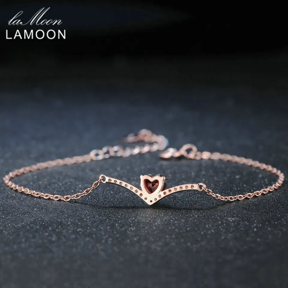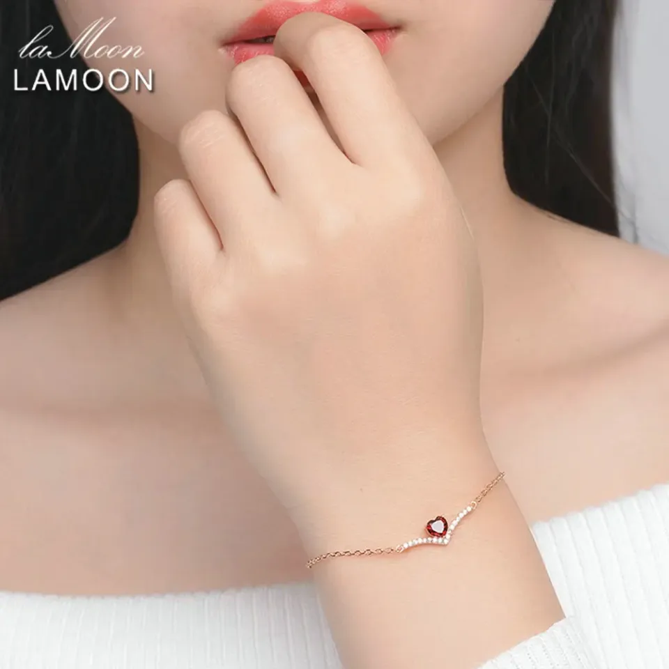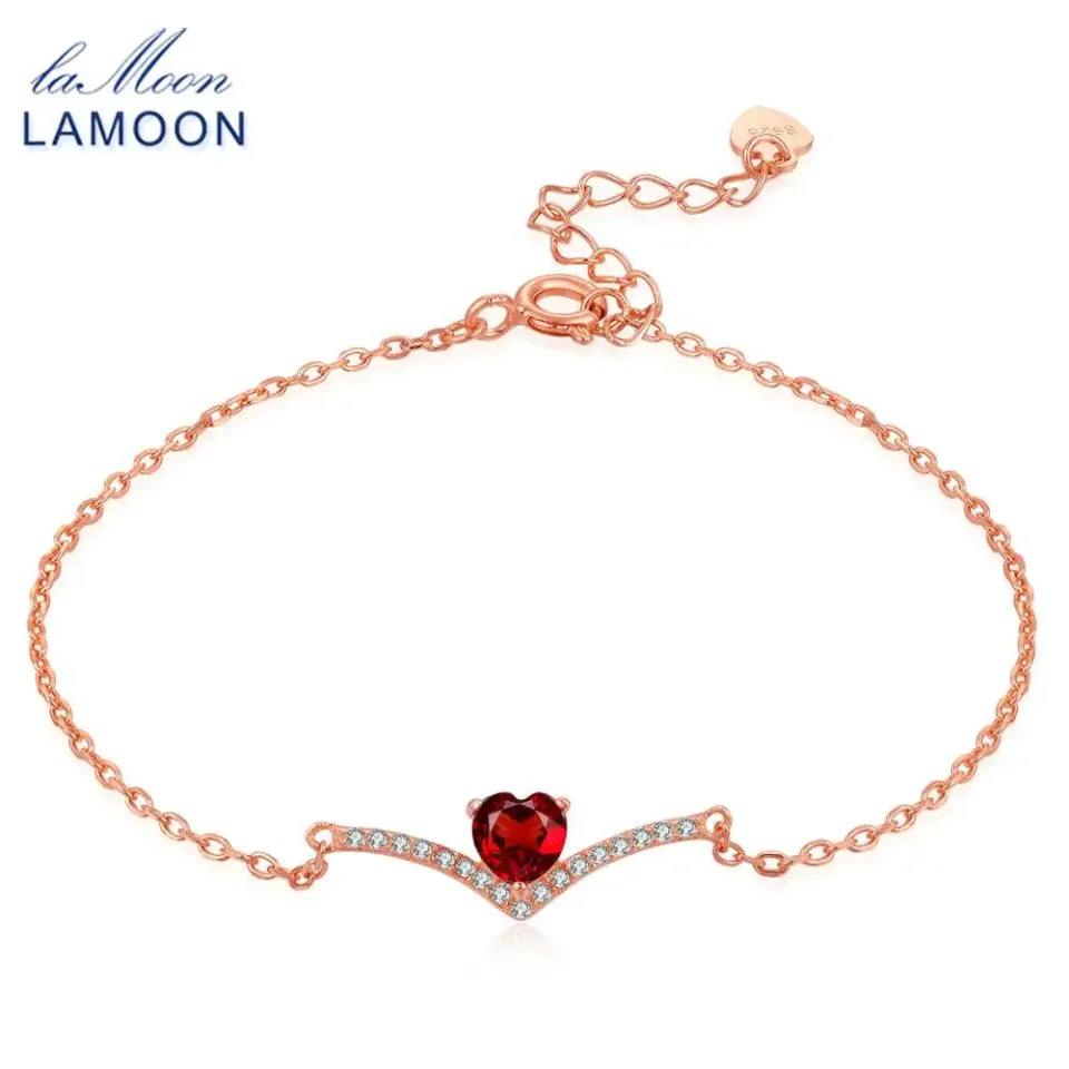 Embrace the essence of love and vitality with La Moon's Red Garnet Heart Bracelet. Crafted to symbolize the profound connections of the heart and the life-sustaining flows of blood, this exquisite piece embodies the feminine life force. It's more than a bracelet; it's a narrative woven in 925 sterling silver, narrating tales of love, friendship, and the unbreakable bonds that define us.