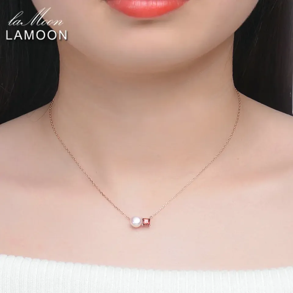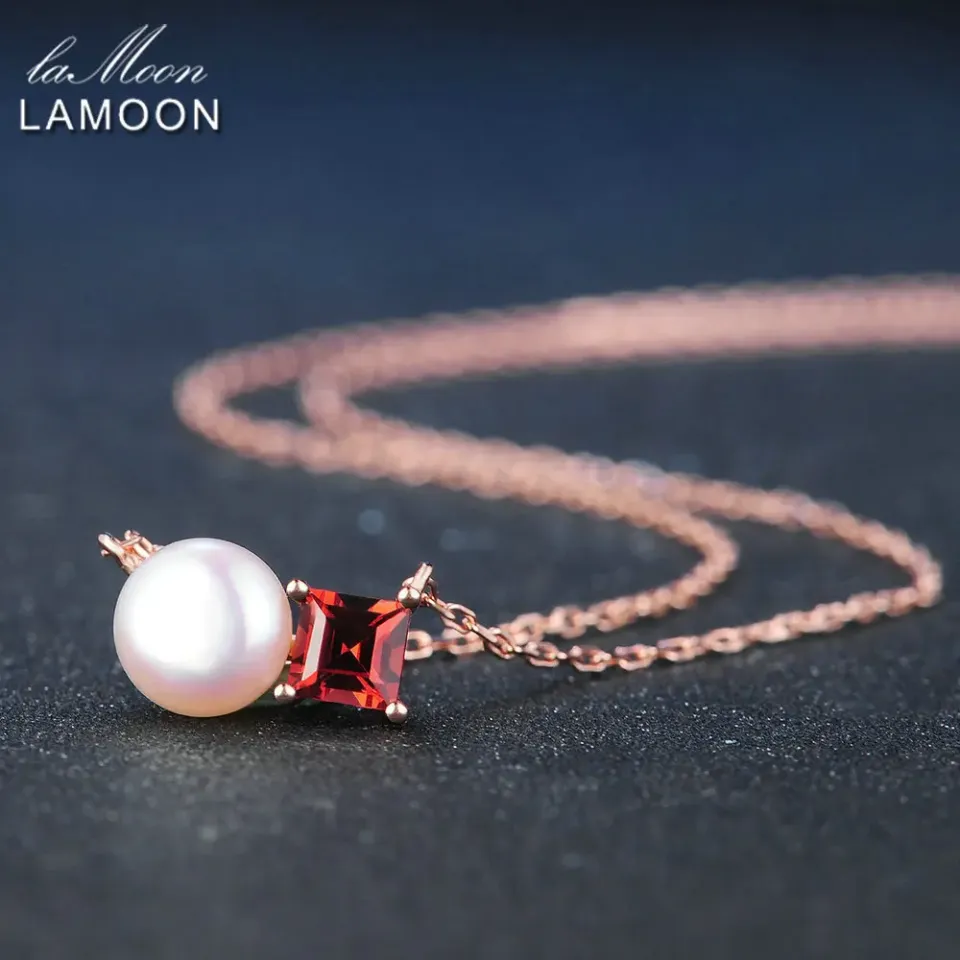 Introducing the exquisite Red Garnet Pearl Necklace by LAMOON, a masterpiece that weaves the essence of purity and the intensity of love into a singular piece of fine jewelry. This necklace embodies the harmony between the serene beauty of pearls and the passionate allure of red garnets, crafted to be a symbol of elegance and emotional depth. It’s a testament to the wearer’s refined taste and their connection to the timeless virtues of love and friendship.