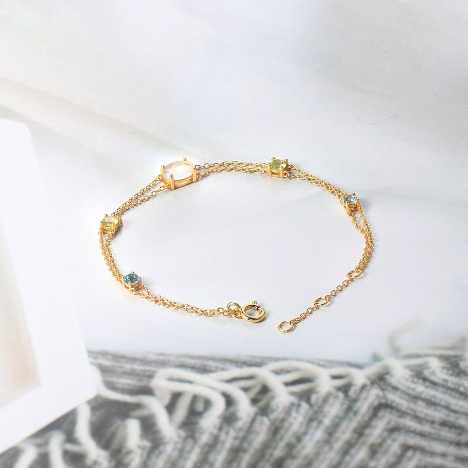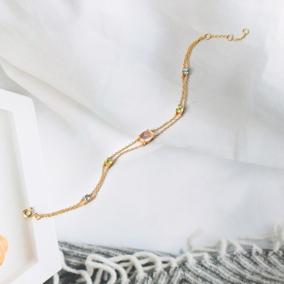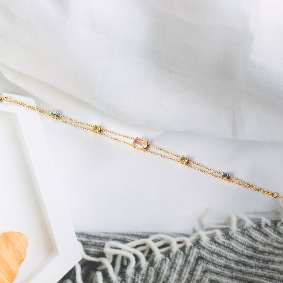 Quartz, or more prominently called as the “universal stone” is often associated with symbolisms of healing, manifesting, meditation and protection. The clear white crystal is said to be a master healer, for it amplifies energy by storing and absorbing and regulating it in the environment. It is also believed that the crystal eliminates and purifies negative energy. While Quartz has everything to do with purification, Topaz is often seen as a symbol of wealth, while covering areas of health and balancing out strong emotions. The sun filled gemstone is however associated with good fortune. It is a kind of gemstone that strengthens one’s confidence and makes us trust our own capabilities. And what could be better than having jewellery that is created with both these gemstones? A beautiful bracelet made with 925 Sterling Silver and embellished with Natural Brazil Rose Quartz and Swiss Blue Topaz with 14K Gold Plated will definitely add elegance to your style statement.