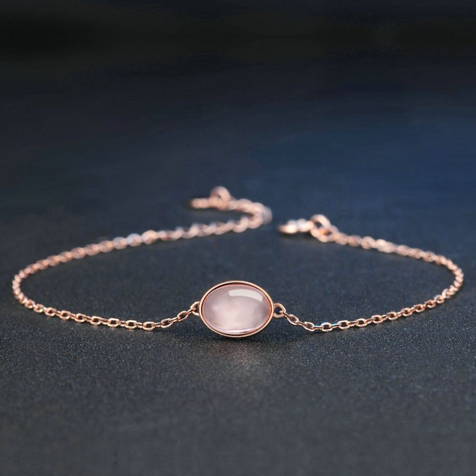 Quartz, or more prominently called as the “universal stone” is often associated with symbolisms of healing, manifesting, meditation and protection. The clear white crystal is said to be a master healer, for it amplifies energy by storing and absorbing and regulating it in the environment. It is also believed that the crystal eliminates and purifies negative energy. While Quartz has everything to do with purification, how can we neglect the beauty and fragility it beholds? We can’t right? So why not get your hands on this Oval shaped Rose Quartz studded bracelet? This piece of jewellery is made with 925 Sterling Silver and is completely Rose Gold plated. The plating goes along with Quartz like a match made in heaven.