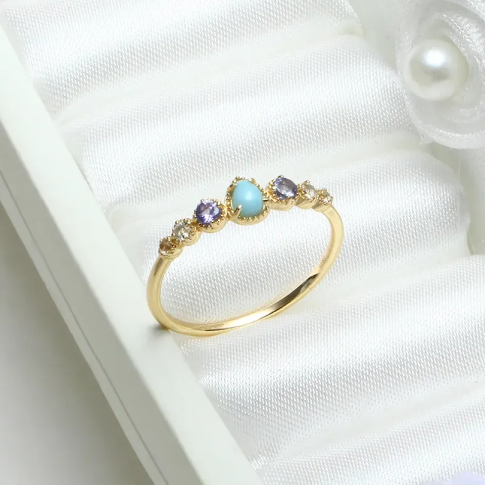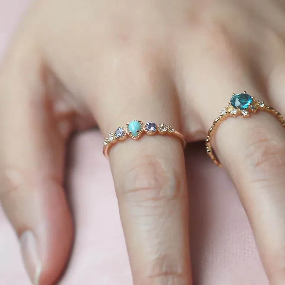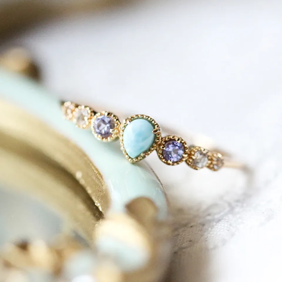 Accentuate the elegance of any outfit with the Sea Inspired Ring. Its serene color palette and sparkling gemstones make it the perfect complement to both day and night ensembles, adding a touch of sophistication and tranquility.