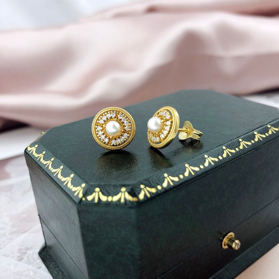 We all crave for aesthetics, specially when it comes to jewellery and outfits. And getting your hands on jewellery that totally do just with Vintage vibes and are of good quality as well is pretty hard to find. But this piece of jewellery is not only very class, but looks astonishingly vintage. Made with 925 Sterling Silver, this pair of Earrings are Gold Plated, embellished with a Pearl in the centre and small zircons around it. Pearl is considered as a highly feminine stone, capable of attracting a lot of attention because of it’s simplicity and beauty. It is also seen as a symbol of fertility and long life.