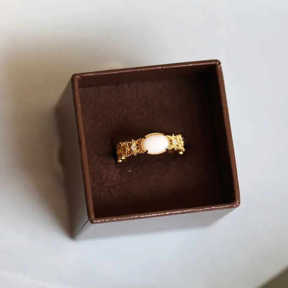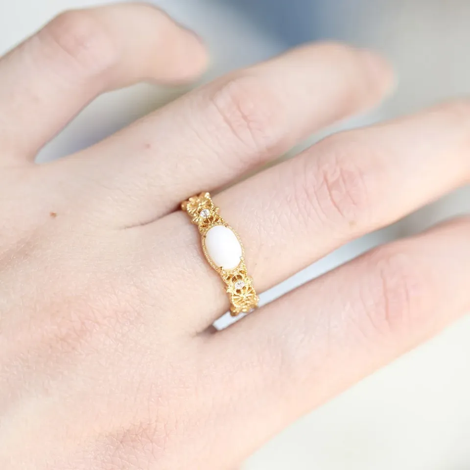 Pair this Vintage White Coral Ring with a simple gold bracelet to accentuate its elegance, making it perfect for both everyday charm and special occasions.