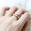 Yellow Quartz is known as an immense healer. It is said to amplify energies and bring positivity around the wearer. It helps in stabilising emotions, barring away stress. Since it bears a warm colour, it has a stimulating effect and represents vividity, energy and vitality. Made with 925 Sterling Silver, this set comes along with 3 different rings that can be worn together to give a more bold yet elegant look. Ring 1 has a braided design, Ring 2 has minute stars carved out and are embellished with stones while Ring 3 is adorned with rectangular Yellow Quartz. The ring comes in three different variants: Gold, Rose Gold and Platinum Plated.